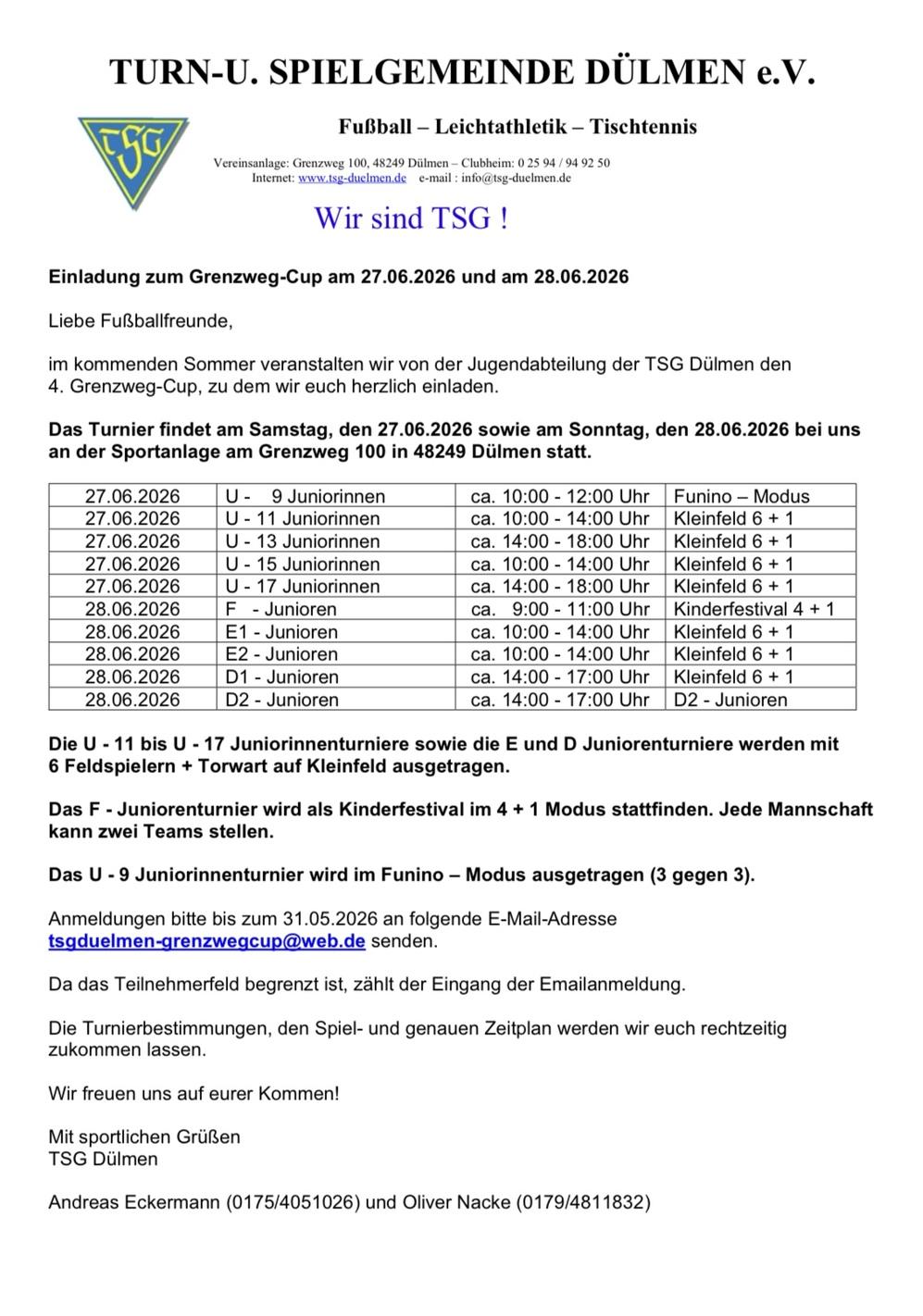 TSG Dülmen e.V. • Grenzweg 100 • 48249 Dülmen