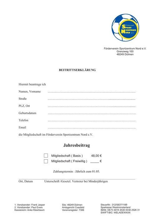 Ab sofort könnt ihr euch die Beitrittserklärung Förderverein Sportzentrum Nord e.V. downloaden.